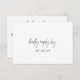 Cartão rsvp de casamento elegante com um layout simples e mínimo com uma combinação de fonte serif clássica e uma caligrafia manuscrita moderna. O tema de cores é preto e branco e pode ser alterado na ferramenta de edição de design. Este elegante cartão de resposta ao estilo tipográfico é excelente de um casamento informal ou formal.