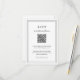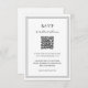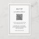 Cartão RSVP de casamento preto e branco clássico com um design simples e mínimo com um código QR opcional e detalhes rodeados por uma borda dupla (se preferir, você pode remover o código QR na ferramenta de edição de design). As fontes se alternam entre um script elegante, um serif tradicional e fontes sans serif minimalistas. Este cartão de resposta é excelente para um casamento formal.