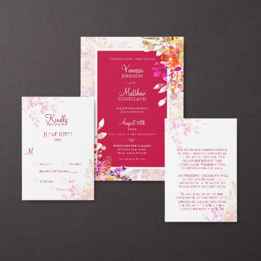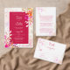 Este elegante cartão RSVP de casamento tem flores laranja e cor-de-água cor rosa brilhantes e ousadas. Personalize facilmente com sua data de RSVP e 3 opções de refeição. Excelente para temas de casamento cor-de-rosa e laranja e jardim inspiraram casamentos em Primavera, Summer e Fall. Itens correspondentes estão disponíveis em nossa coleção.