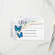 Crie seus próprios cartões de rsvp de casamento de borboletas azuis elegantes para acompanhar seus convites personalizados para hóspedes responderem. A trabalho de arte de aquarela original de Raphaela Wilson apresenta 2 grandes borboletas tridimensionais com faíscas, belos arco-íris macio e uma textura de pedra russa leve. As asas retratam um padrão botânico macio de rosa / flor silvestre, fazer-os especialmente únicos. Esta simples modelo pode ser perfeita para casamentos com borboletas do arco-íris, um conto de fadas quinceanera / doce 16 festas de aniversário, chá de fraldas de princesa, uma vez após um chá de panela, ou outras celebrações mágicas onde essas beleza do jardim alado trazem alegria. Há muito espaço na parte de trás desses cartões rsvp elegantes de casamento para adicionar uma nota manuscrita para desejos de sucesso, um código qr ou detalhes adicionais da festa. Se você personalizar ainda mais esta design de borboleta, você pode reposicionar a arte para melhor se adequar ao seu rico, além de adicionar outras opções, como a escolha da refeição, etc. Sinta-se à vontade para mudar as fontes modernas na moda e a escrita caligráfica para outra tipografia desejada. Aproveite! Categoria: cartões rsvp do arco-íris quinceanera; cartões rsvp de casamento com borboletas azuis; e convites rsvp de resposta moderna. Cor do partido clássico azul e prateado: azul escuro, azul real, marinho, turquesa, prata, preto e branco (mais arco-íris multicolorido).
