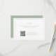 Cartão RSVP de Casamento Simples com um design moderno, mas elegante, com seu monograma de duas letras junto com seu Código QR personalizado cercado por uma borda fina. Todo texto é verde sábio sobre um fundo branco e pode ser alterado para qualquer cor desejada clicando no botão "personalizar". Um Cartão de Resposta de Casamento Chic e na moda que vai bem com qualquer estilo de suíte de convite para casamento.