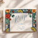 Cartão RSVP Casamento Elegante Lemon Botanical Blue Mediterrân