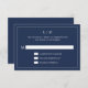 Cartão RSVP Casamento Elegante Monograma Azul Simples Marinho