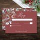 Celebre seu novo começo com a beleza botânica do inverno. Este cartão de resposta do casamento sem opções jantes apresenta um quadro casual de pinho, eucalipto e bagas em sábado, verde-pinho e vintage rica, vermelho em um rico fundo vermelho. Elegante e perfeito para a estação. Criado pela imprensa simplesmente de farmácia.