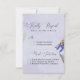As modernas placas RSVP de Cores d'Água dos Partidos Tema apresentam as bonito marés de cor púrpura-azul-gerbera definidas em amostras de cor d'água azul pastel correspondentes sobre um fundo de lavanda pastel. A tipografia está fluindo um roteiro emparelhado com um tipo de serifa tradicional. #ModernWedding #Casamento #PurpleDaisies