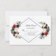 Design de cartão elegante, com uma bela broca de cor d'água, buquês de flores azuis de merlot e marinho, em forma de diamante duplo, em branco e atrás das mesmas flores em fundo azul marinho. Pode ser uma escolha excelente para qualquer casamento da temporada, especialmente para casamentos outono e inverno. Use a ferramenta Personalizar para adicionar suas informações e fazer alterações. Para obter itens correspondentes, visite minha Coleção Geométrica Floral do Marinho Merlot.