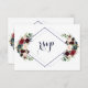 Cartão RSVP Casamento Floral Azul Marinho Geométrico Moderno