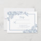 Este Cartão de Confirmação de Presença de Casamento Floral Elegante em Azul Poeira é elegante, moderno, sofisticado e charmoso - perfeito para um casamento de jardim, botânico, rústico, romântico, floral, formal ou vintage. Sua combinação requintada de rosas azuis poeirentas graciosas e folhagens finas é fluida, delicada e bonita. Seu design monocromático é impressionante e clássico.