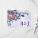 Cartão RSVP Casamento Floral Azul Púrpura Monograma
