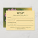 Personalize facilmente este cartão RSVP para o seu casamento ou evento. O design apresenta um trabalho de arte floral que representa uma flor de crisântemo branco roxo, cor-de-rosa e cremoso, com um botão e uma folha contra o ocre amarelo ouro e o verde-oliva.
