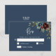 Cartão RSVP Casamento floral de Marinho azul-hic Elegante