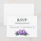 Um cartão de resposta RSVP de rosa floral roxo.