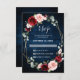 Cartão de RSVP de casamento floral geométrico romântico moderno e elegante apresenta um buquê de rosas de água em cor burgundy / marsala, rosa bege, pêssego com folhagem combinando em fundo de madeira rústica navy. Perfeito para um casamento de outono / verão. Por favor, encontre mais designs e variações correspondentes na minha loja "blissweddingpaperie". E sinta-se à vontade para entrar em contato comigo para personalização adicional ou itens correspondentes