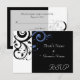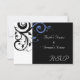 Convites de casamento preto modernos contemporâneos ousados e impressionantes com acentos de centáurea azul periwinkle e branco, com delicado fundo de folha de rolo em espiral. Personalize online com os detalhes do seu casamento.