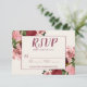 Cartão de resposta RSVP de casamento floral e folhagem burgundy e rosa bege elegante e romântico.