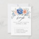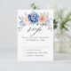 Cartão RSVP Casamento Floral Rosa Bege Poeira Azul Marinho