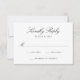 Convide os convidados para o RSVP para o seu casamento em estilo com este cartão RSVP de casamento Floral da Chinoiserie Negra Victorian. O design apresenta um elegante roteiro de caligrafia negra e um padrão floral inspirado na Chinoiserie na parte de trás do cartão. Personalize o cartão RSVP de casamento chinês preto com a data de resposta desejada.