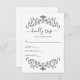 Cartão RSVP Casamento Formal de Ornamentado Branco Negro Silve