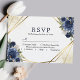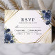 Cartão RSVP Casamento Geométrico Floral Azul Marinho Dourado