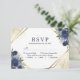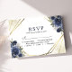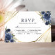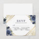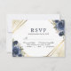 Cartão de RSVP de Casamento Geométrico Floral Azul Marinho Dourado