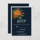 Cartão RSVP Casamento Laranja e Marinho Floral Moderno e Frio