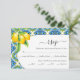 Cartão RSVP Casamento mediterrânico de limão azulejo azul e am