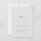 Preencha sua suíte de casamento com nosso cartão RSVP elegante e minimalista. Projetado para combinar com a nossa suíte de convites mínimos Elegante, esta placa RSVP apresenta um fundo de quase cinza branca com as iniciais do casal centradas na metade superior, utilizando espaço negativo para uma aparência limpa e moderna. As opções de resposta são claramente apresentadas na metade inferior, garantindo que os hóspedes possam facilmente fornecer suas respostas. A parte de trás do cartão apresenta um fundo teal impressionante com as iniciais do casal suavemente impressas no centro, mantendo um design coeso e na moda em toda a sua suíte de papelaria de casamento.