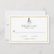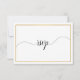 Um cartão RSVP de casamento com tema náutico rodeado por uma armação de ouro e desenho de um veleiro. No lado inverso estão as letras RSVP em uma fonte de script. Esta placa de resposta tem uma design saborosa e subestimada. Ele apresenta elementos náuticos que ressoam com seu amor compartilhado pela água e navegação. Perfeito para um casamento de destino ou uma cerimônia no clube do iate no lago.