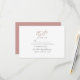 Esta placa RSVP chic e minimalista apresenta um fundo branco limpo com sotaques caligráficos modernos em rosa suave e cinzas de carvão. Com opções claramente definidas de atendimento e preferências alimentares — inclusive vegetariana, vegetariana e sem glúten — é o complemento perfeito para uma suíte de convites para casamento moderna ou romântica. Elegante e fácil de personalizar para qualquer celebração de casal.