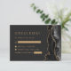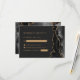 A borda direita desta elegante placa de gabinete RSVP de casamento moderna apresenta um design de geode de coloração aquosa preta, cortado com brilho dourado. O título "Responder gentilmente" aparece em uma fonte serif romana, com texto personalizável abaixo em uma fonte compacta de cor dourada em um fundo preto de ardente. Um design de agate preto e dourado correspondente aparece no verso.