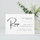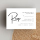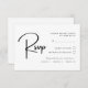O Cartão RSVP de Casamento Negro e Branco Elegante e Moderno oferece uma maneira na moda e prática de reunir as respostas dos seus convidados e, ao mesmo tempo, adicionar sofisticação à sua suíte de papelaria de casamento. Projetada com uma paleta monocromática de eterno que combina elegância clássica e minimalismo moderno, esta placa de RSVP complementa perfeitamente qualquer tema de casamento, desde celebrações solenes de gravata negra até encontros contemporâneos quentes. Impresso em estoque de cartolina de alta qualidade com tipografia nítida e um layout limpo, ele fornece um formato fácil e elegante para os convidados responderem. Mais do que um simples cartão de resposta, ele ajuda a dar o tom para o seu evento e cria um olhar elegante e coeso que reflete o seu estilo de casamento.
