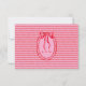 Este cartão de resposta de casamento fotográfico caprichoso com opções de jantar apresenta uma moldura retangular recortada vermelha e lúdica contra um fundo listrado rosa e vermelho divertido. Suas iniciais tomam o centro das atenções no verso. Perfeito para um casamento com estética preppy ou de Valentin, este design charmoso fornece um visual doce e pintado à mão para sua celebração especial. Criado por Simply Farmhouse Press.