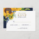 Cartão RSVP Casamento Russo de Girassol Azul Marinho de Aquare