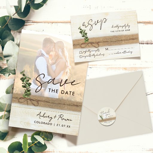 Cartão RSVP Casamento Rustic Boho Floral Eco Wood Eucalyptus
