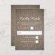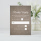 Estas cartas de RSVP são perfeitas para qualquer casal planejando um casamento romântico por país. O design apresenta um fundo de efeito de burlap rustic com uma redação branca elegante. O design simples pode ser personalizado para se adequar ao seu evento especial e será o cartão de resposta perfeito para qualquer festa temática rústica, incluindo chás de panela, noivados, chás de casamento, festas de aniversário e muito mais.