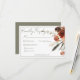 Esta design de placa RSVP moderna, mas rústica, apresenta um buquê lateral de pessegueira, ferrugem, terracota, flores marrom e branca. O fundo é branco com uma imagem fina verde-sábio; o fundo é um verde-sábio macio. Esta design faz parte da Rustic Terracotta Rust Flowers Wedding Suite de cartas criadas pela Simplesmente Farmhouse Press.