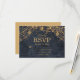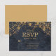 Cartão RSVP Casamento Rústico Glam Azul Marinho Dourado