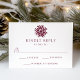 Assegure um processo de resposta sem problemas com nossa simples placa RSVP de Casamento de Neve com Floco de Neve. Apresentando um floco de neve cor de vinho ousado no topo sobre um fundo branco nítido, este design elegante é perfeito para o inverno, feriado e casamentos de Natal. Personalize-o com a data de resposta desejada e permita aos convidados RSVP com facilidade. Adicione um toque de charme sazonal à sua papelaria de casamento com este cartão RSVP de eterno.