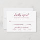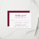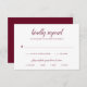 Cartão RSVP de Casamento Clássico com um design simples com o cabeçalho em um roteiro tradicional junto com seus detalhes em burgundy sobre um fundo branco. O modelo tem opções de refeição para seus convidados. Este Cartão de Resposta de Casamento sofisticado e elegante é excelente para um casamento formal.
