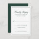 Cartão RSVP de casamento verde de floresta do estilo tradicional apresentando um design simples com "Resposta gentil" em um dentro de caligrafia elegante de uma fronteira fina. O modelo permite que seus convidados indiquem o número de participantes. Este design clássico é perfeito para um casamento formal.