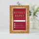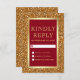 Cartão RSVP Elegante com borda falsa de folha de ouro e um belo fundo falho de ouro brilhante.
