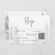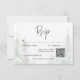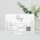 Escapar para um retiro sereno da montanha com o seu cartão de resposta de casamento com um código QR. Este requintado design mostra uma pintura de cor d'água que respira uma majestosa pintura de uma majestosa floresta coberta de pinheiros em uma serena neve coberta por uma paisagem inclinada. Os tons naturais acinzentados de verdes, azuis lacrimogêneos e cinzentos criam uma atmosfera eterno e sofisticada, lembrando uma fuga pacífica dos Alpes. O claro fundo branco e o texto moderno de fontes adicionam um toque de elegância contemporânea, equilibrando a beleza natural da cena. Esta design não só anunciará seu dia especial como também definirá o tom perfeito para uma celebração verdadeiramente memorável, convidando seus convidados a se juntar a vocês em uma jornada de tranquilidade e amor. Criado pela imprensa simplesmente de farmácia.