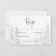 Escapar para um retiro sereno da montanha com o cartão de resposta do casamento sem opções jantadas. Este requintado design mostra uma pintura de cor d'água que respira uma majestosa pintura de uma majestosa floresta coberta de pinheiros em uma serena neve coberta por uma paisagem inclinada. Os tons naturais acinzentados de verdes, azuis lacrimogêneos e cinzentos criam uma atmosfera eterno e sofisticada, lembrando uma fuga pacífica dos Alpes. O claro fundo branco e o texto moderno de fontes adicionam um toque de elegância contemporânea, equilibrando a beleza natural da cena. Esta design não só anunciará seu dia especial como também definirá o tom perfeito para uma celebração verdadeiramente memorável, convidando seus convidados a se juntar a vocês em uma jornada de tranquilidade e amor. Criado pela imprensa simplesmente de farmácia.