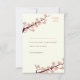 Complemente a sua suíte de casamento com esta elegante carta RSVP com tema de cereja. Apresentando um ramo ilustrado de flores de cereja, a design combina as cores do trabalho de arte no texto, criando uma aparência harmoniosa e coesa. A frente amarela clara adiciona calor, enquanto a parte de trás azul clara mostra a continuação da ilustração florescente da cereja. Perfeito para casamentos inspirados na natureza ou na primavera, esta placa RSVP oferece uma bela maneira de seus convidados responderem ao seu dia especial.