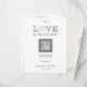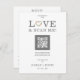 The card features a floral heart-shaped wreath in soft pink tones, highlighting the "o" in the word "love". This delicate and romantic design adds a personal and charming touch to your invitation. The design includes an elegant QR code that makes it easy for guests to confirm their attendance and access more details about the event.