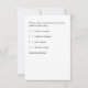 Apresente um toque artístico e personalizado à sua papelaria de casamento com o Cartão de Resposta com Chic Hand Lettered. ・ Script de "resposta" com letra de mão na margem superior ・ Fonte de serif de laboratório para texto personalizável na frente e no verso ・ Coordena-se com o Convite de Casamento Cruzado Monograma com Letra Mão Escrita ・ Retorno personalizável para a coleta de RSVPs, preferências de refeições e muito mais Este cartão de resposta requintado eleva seu pacote de casamento com sua estética refinada e artesanal. O guião de "resposta" escrito à mão captura instantaneamente o olho, acrescentando um elegante e artesanal florescimento. A fonte slab serif na frente e atrás fornece a canvas perfeita para seus detalhes personalizados. Projetado para complementar seu convite de casamento, este cartão de resposta criará uma suíte de papelaria coesa e memorável. Use a parte de trás personalizável para coletar as informações necessárias de seus convidados, sejam RSVPs, opções de refeições ou solicitações especiais. Com seu estilo de eterno e opções de personalização, este cartão de resposta fará com que seus entes queridos estejam ansiosos para celebrar seu dia especial. De encontros íntimos a grandes negócios, o Cartão de Resposta com Chic Lettered é a forma perfeita de dar o tom e reunir os detalhes de que você precisa no estilo. Elevem a sua papelaria de casamento com esta bela e personalizada peça.