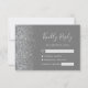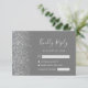 A borda esquerda desta elegante placa de caixa RSVP de casamento moderna apresenta uma borda cintilante de falso prateado. O texto personalizável combina a escrita manual de cinzas prateadas, fontes copperplate e itálico em um fundo de cinza. O verso apresenta uma cinza e uma design prateada correspondentes.
