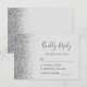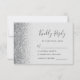 A borda esquerda desta elegante placa de caixa RSVP de casamento moderna apresenta uma borda cintilante de falso prateado. O texto personalizável combina a escrita manual de cinzas de carvão, as fontes em copperplate e itálico em um fundo de cinza pálido. O verso apresenta uma design prateada e pálida.