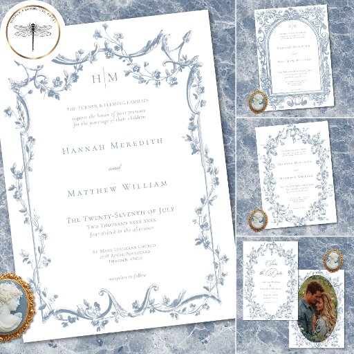 Classic Elegant Dusty Blue Floral Frame WeddingCriado por Kathe Santillo