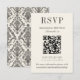 Cartão RSVP Classic Ivory Damask Rococo Pattern Wedding QR